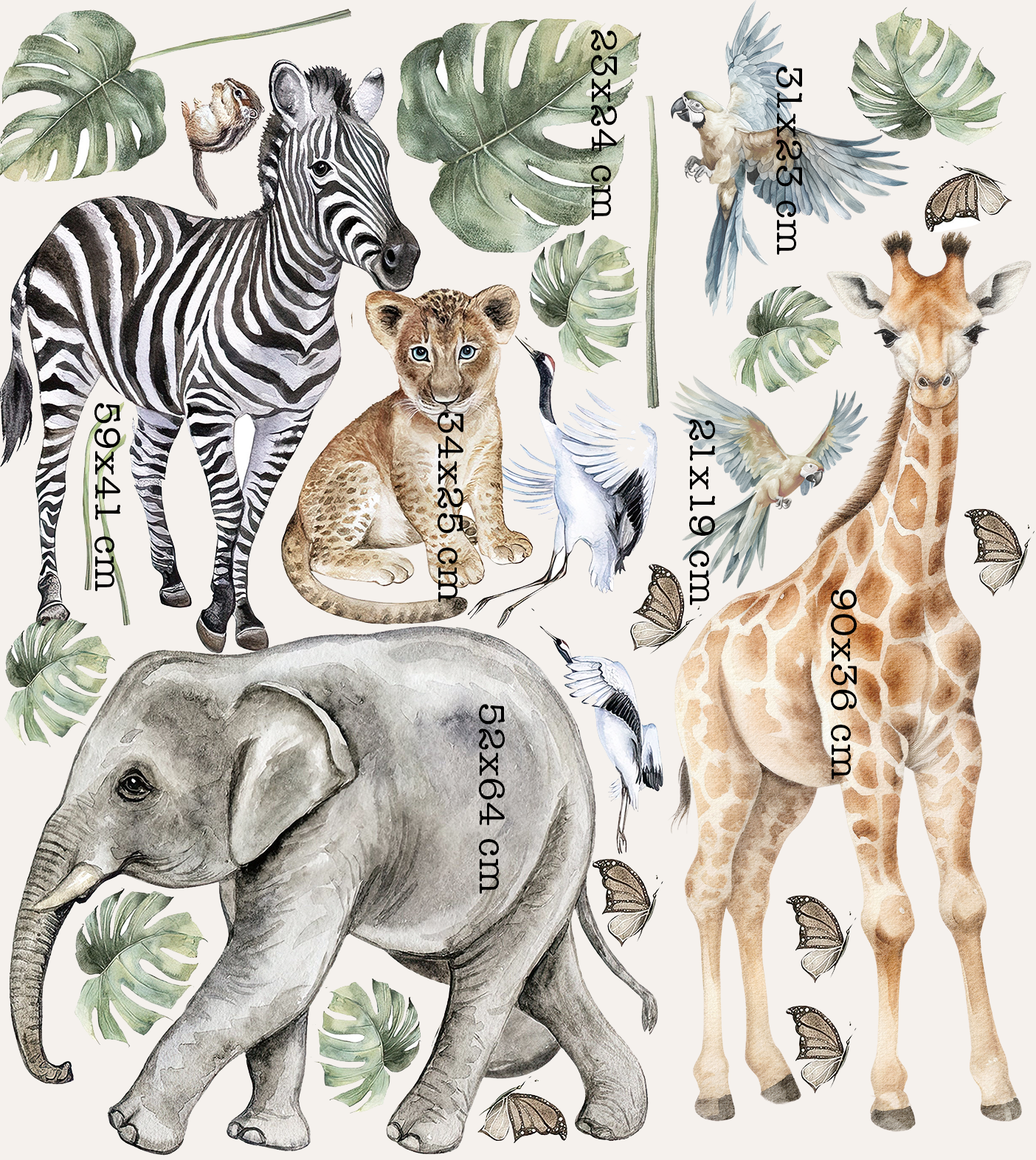 - Vielseitige Gestaltungsmöglichkeiten: Mit einer Vielzahl von Stickern in verschiedenen Größen und Designs können Sie das Kinderzimmer ganz nach den Vorstellungen des Kindes gestalten und eine individuelle und einladende Safari-Welt schaffen.